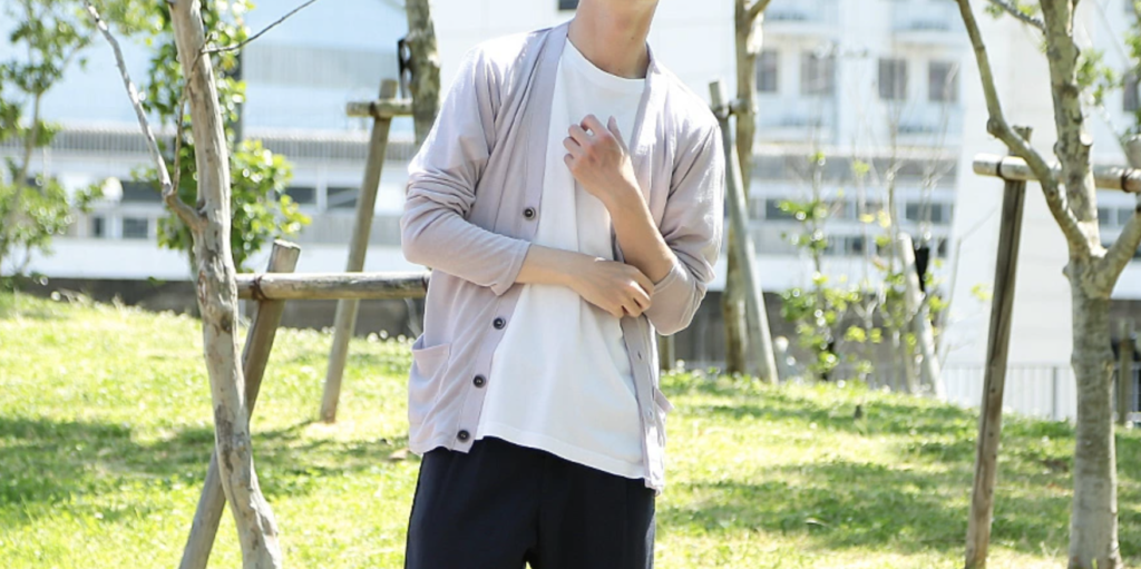 「超薄手のカーディガン」 を羽織ることで、体のラインが目立ちにくくなります。 カーディガンの下が半袖でもカーディガン自体が七分袖なら、上で紹介した「ニットの七分袖」と同じように体のラインが目立たず着れます。