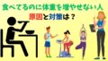 どうやっても太れない(体重が増えない)と悩んでいる人は病気を疑ってみるのがいいかもしれません。 ただ食べているつもりでも全くカロリーが足りていないという人は多いので食生活の見直しもオススメです。